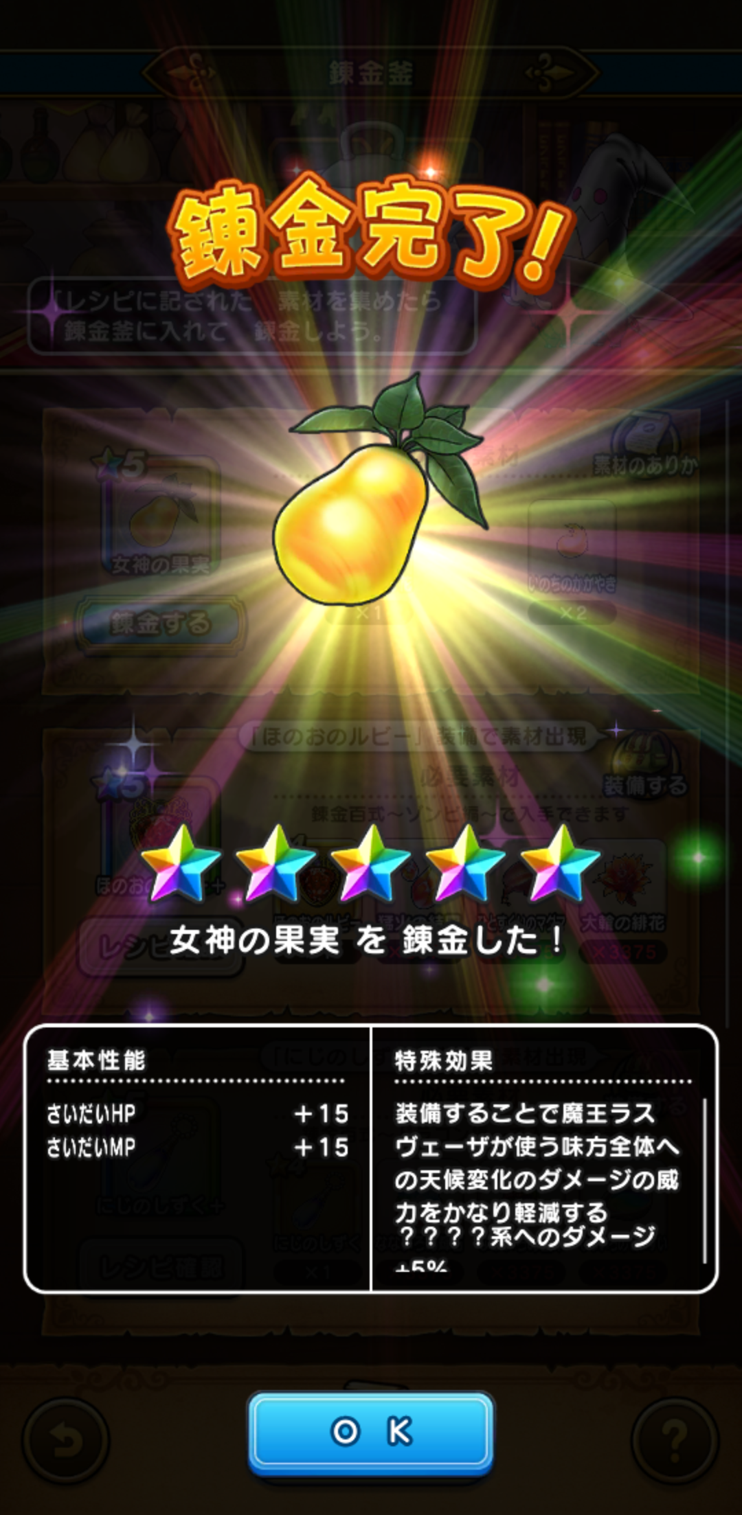 希望の樹はいちおう、レベル4までは終わって、女神の果実も練成はできました。