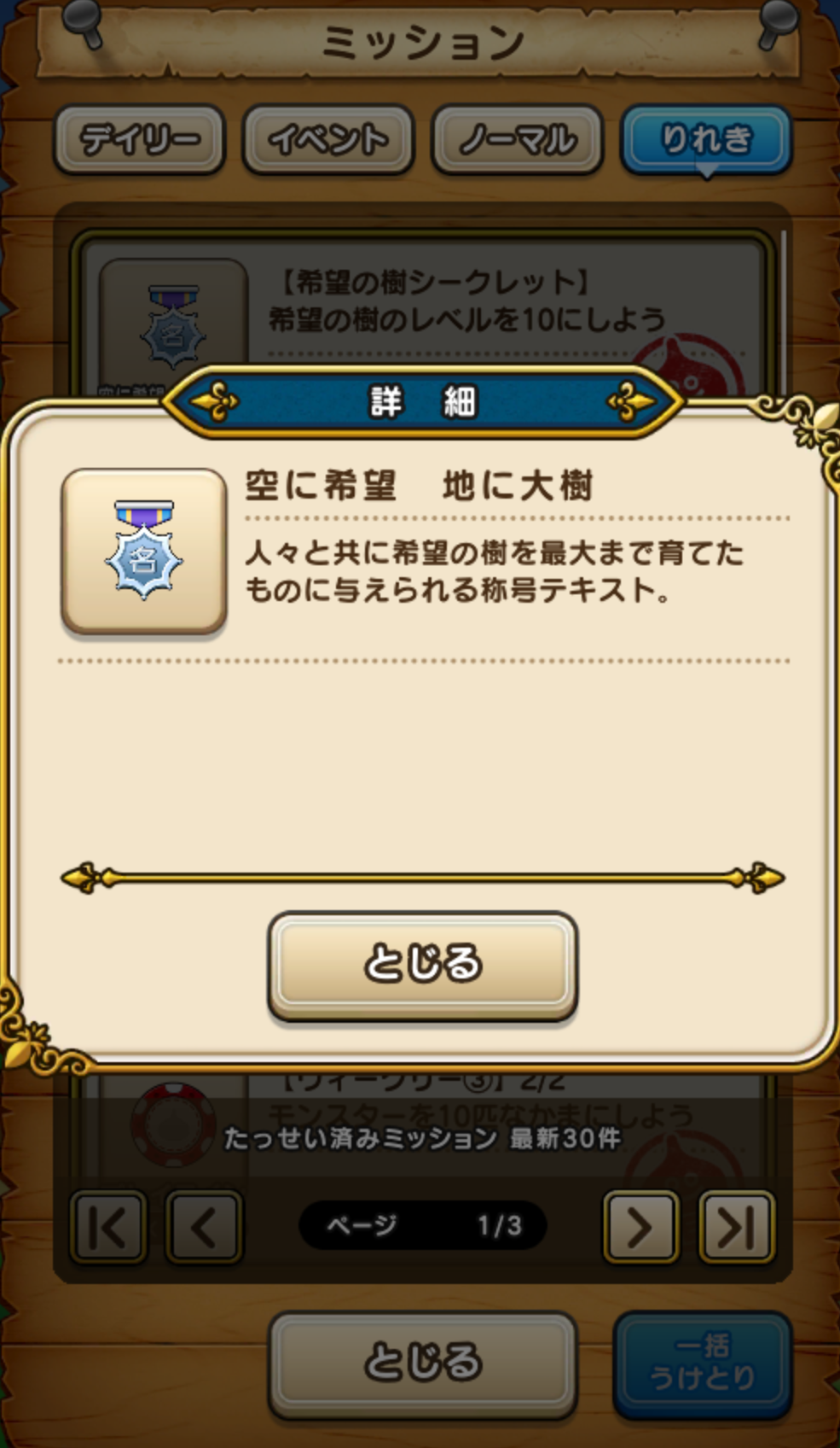 さて、五周年イベントは延長されていますが、本来の期限までに希望の樹レベル10コンプです。