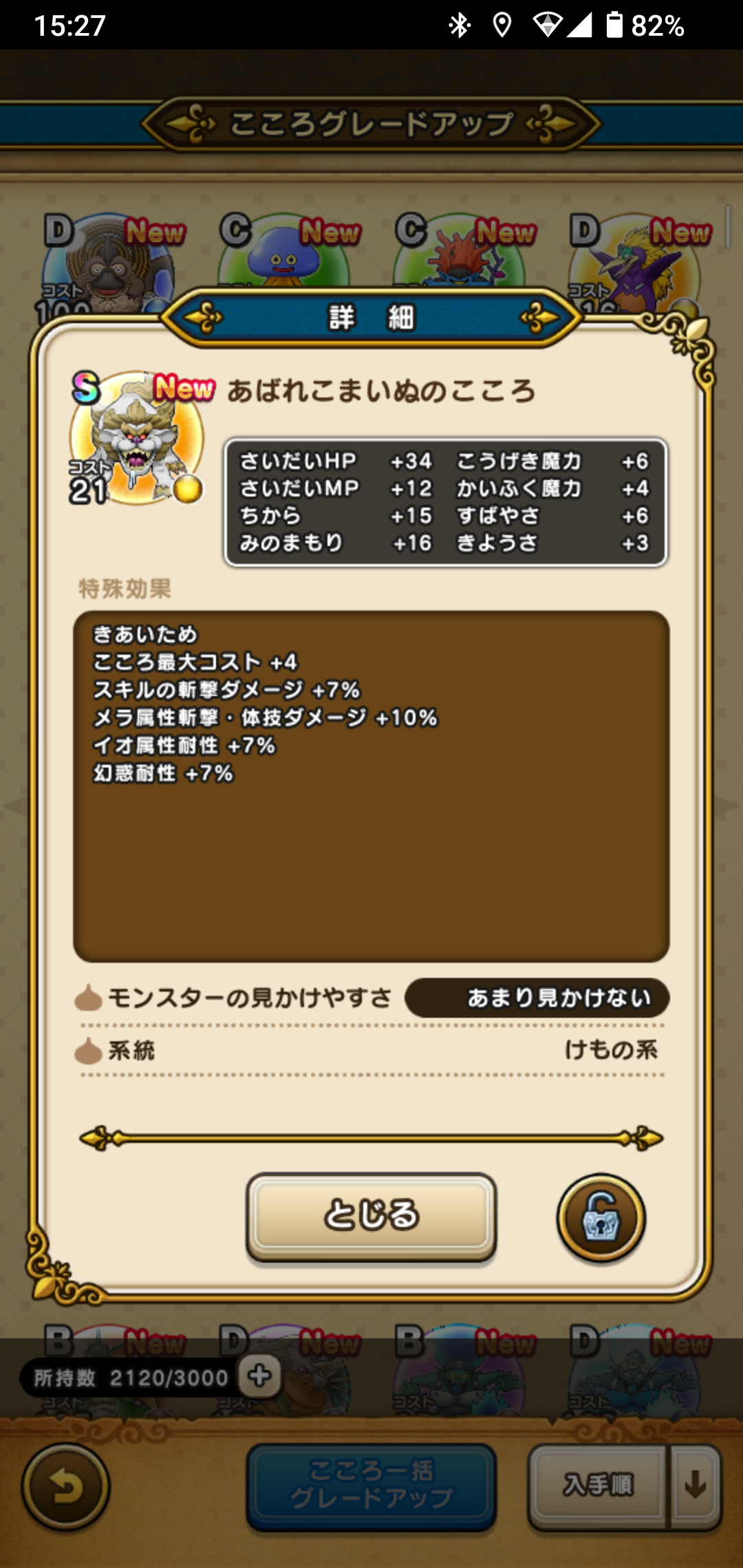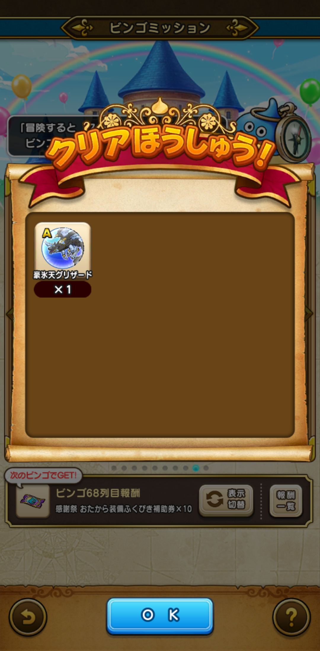 ビンゴカードは9枚目までいき、ビンゴ真ん中のグリザードのこころはもらえました。これが最大目標だったので、自分的にはこれで満足。