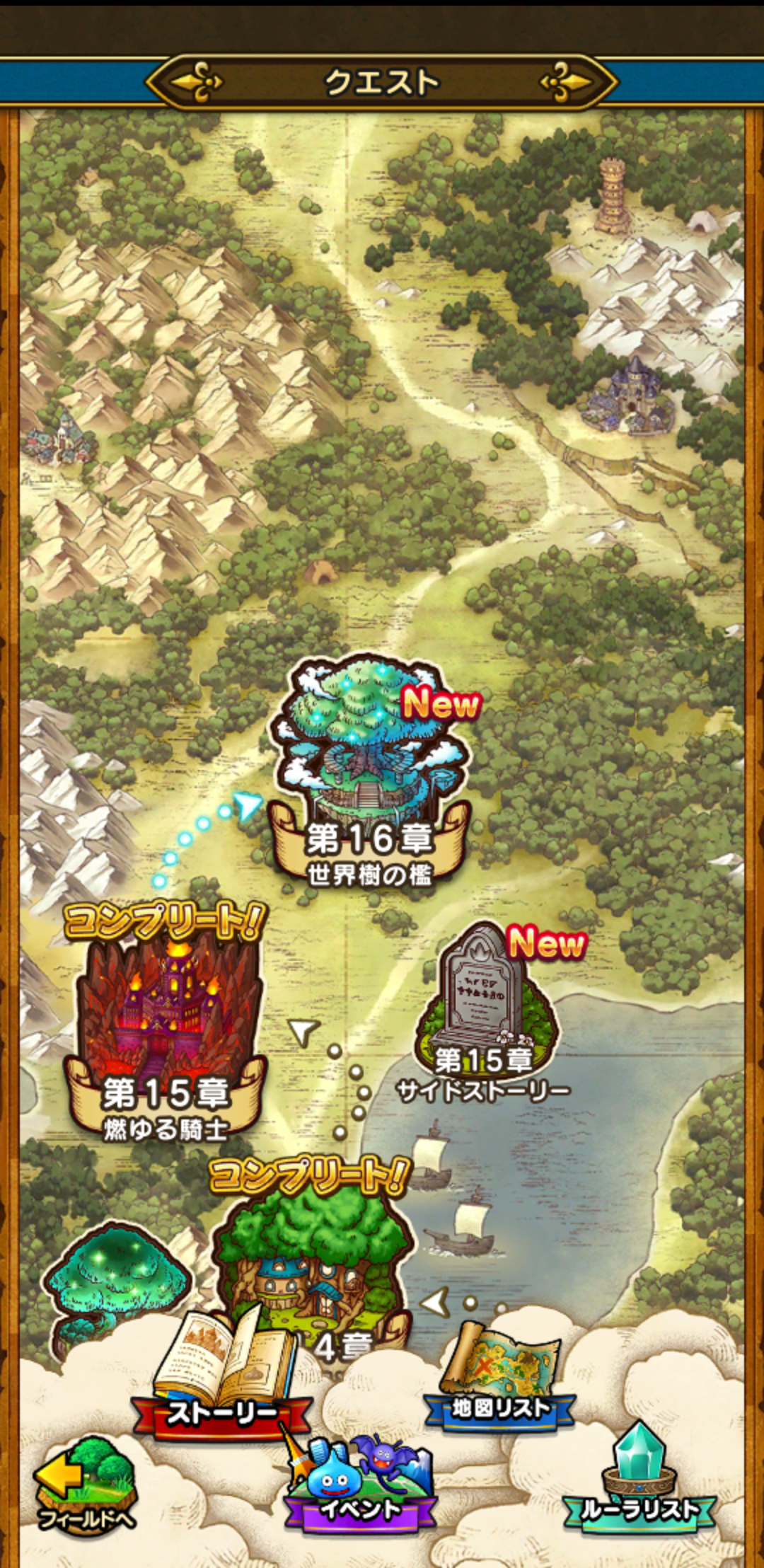 メインストーリー15章のエピローグをクリアしたので、16章が解放されました! ワクワク