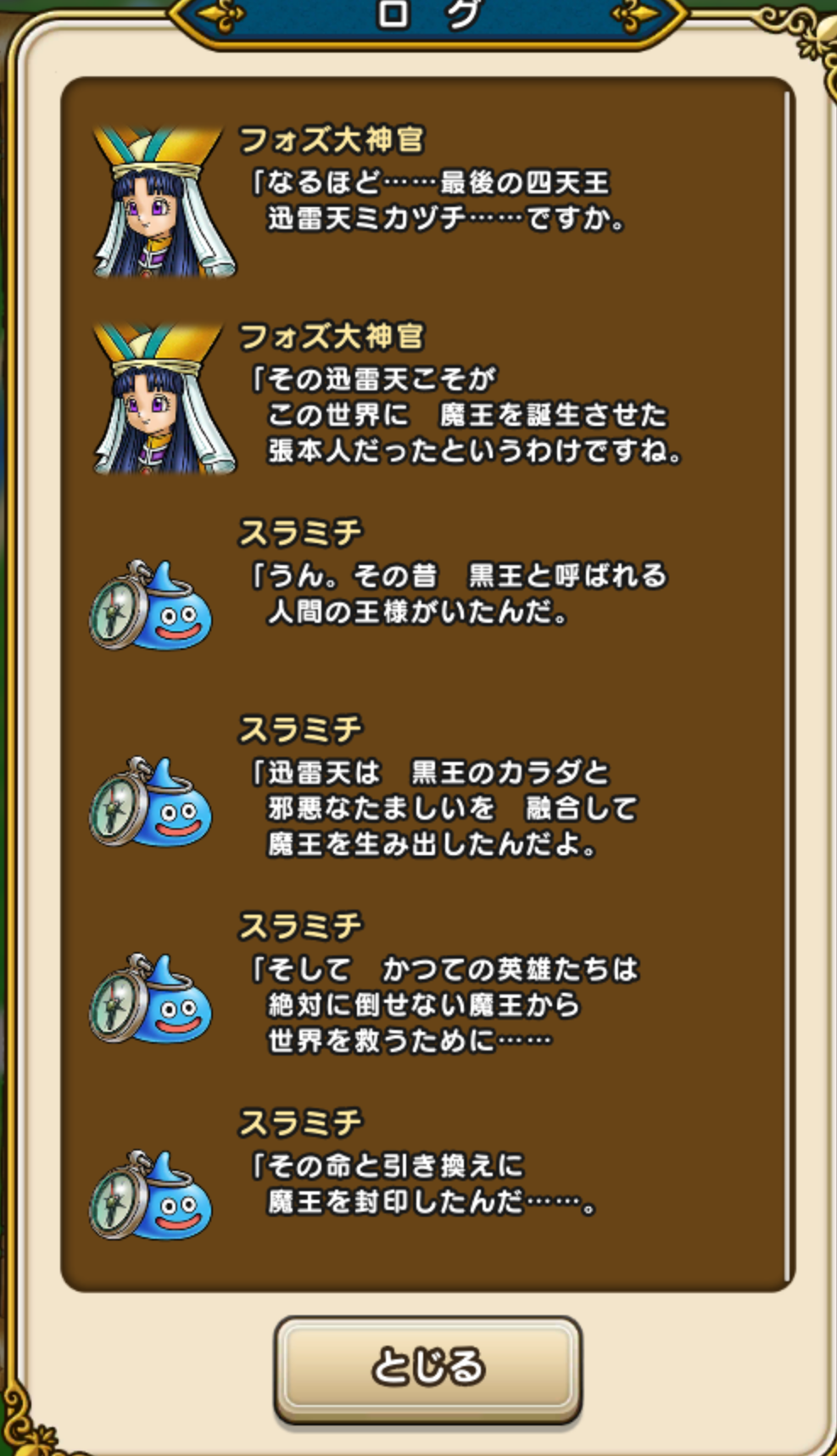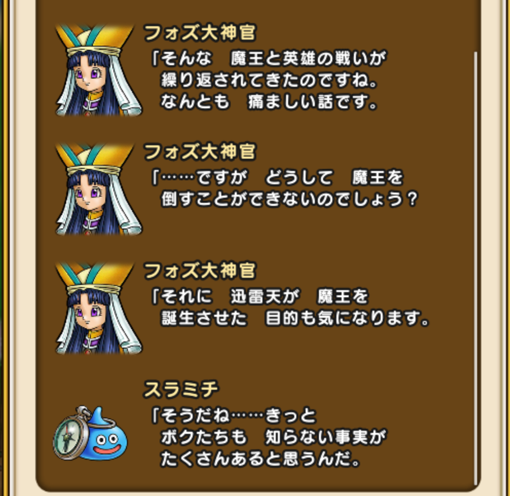 魔王を倒せないということは、DQ9にあった天使は上位天使に逆らえないという設定と何か関係があるのか…もしくは、グランゼニスが魔王と仮定すると、この世界の創造神?世界そのものの一部?みたいな感じで、倒すと世界が消滅するとかなのかな~とかとか妄想しています。
