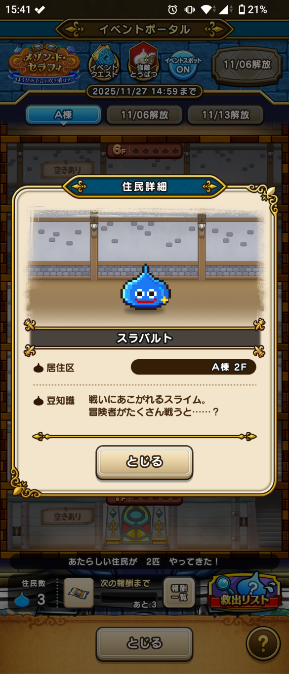 とにかく集めるスライムたちが部屋を与えられてどんどん入居するんですが、動きや説明文(豆知識)がかわいすぎる。
