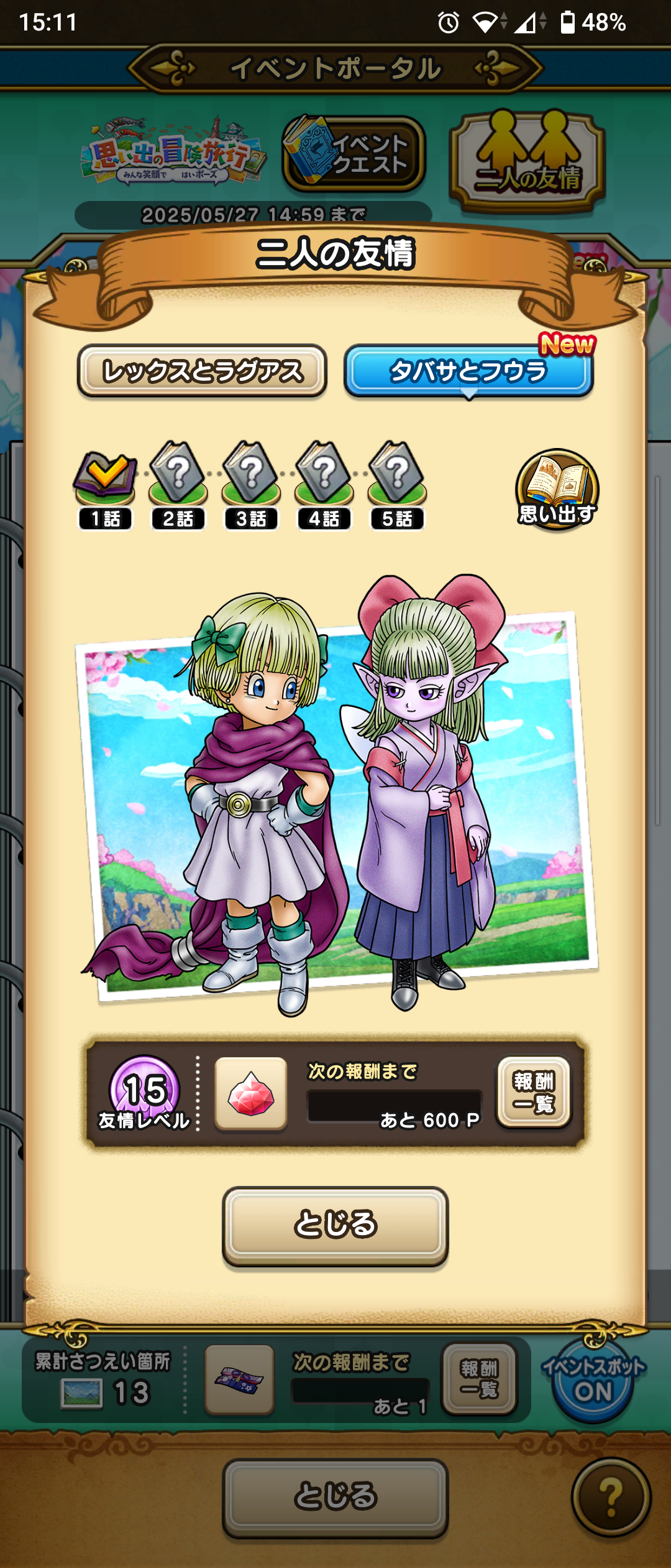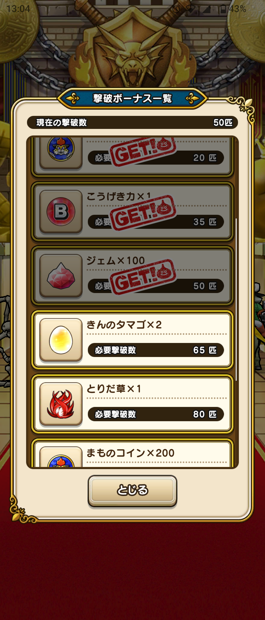平日は掃除に専念したいのでドラクエウォークの進捗はよろしくないですが、出かける日や土日などに少しずつやっています。