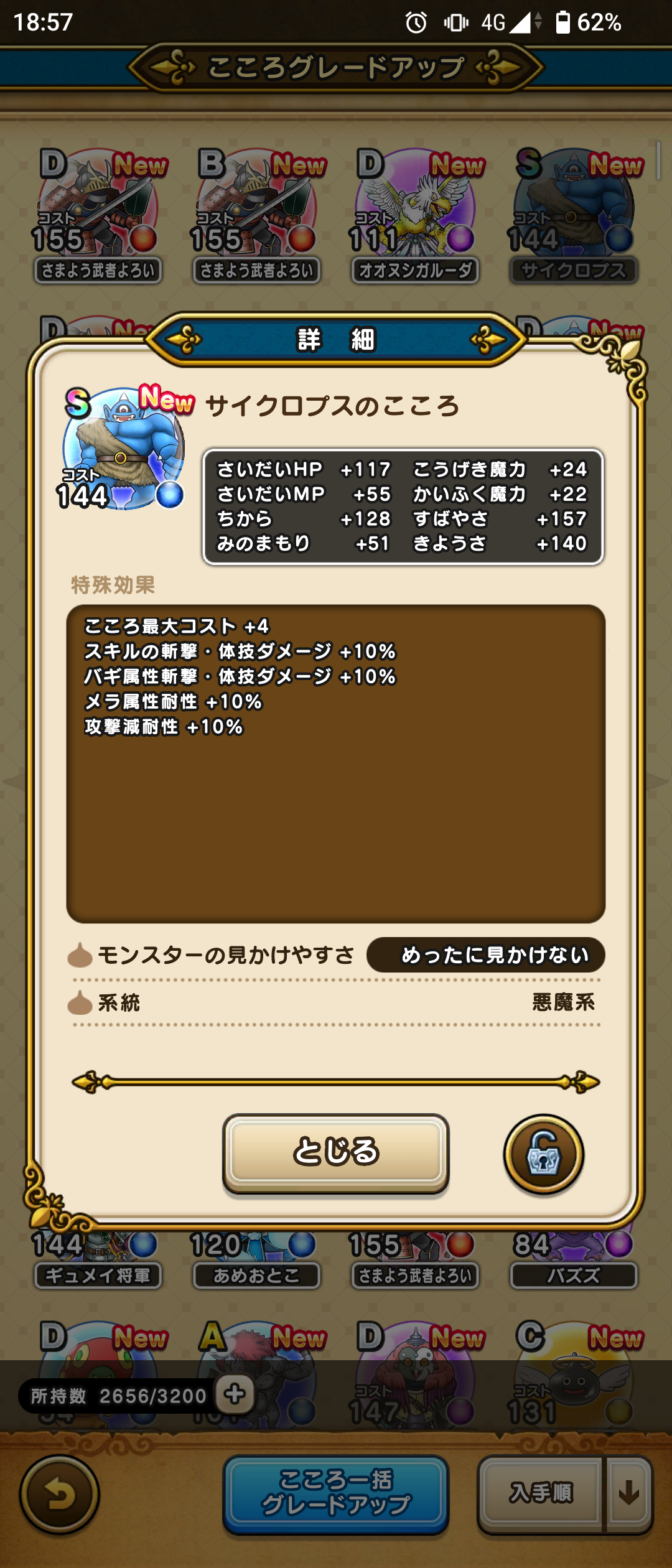 レアモンチャンスで、サイクロプスさんS直ドロしてた模様。ありがたい。