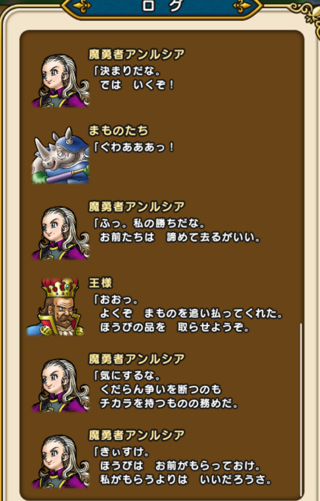 アンルシアに戻っても、「強く生きて」といったのエモいね…(魔勇者の台詞スクショし損ねてますが、別れの時「強く生きろ」と言ってます)