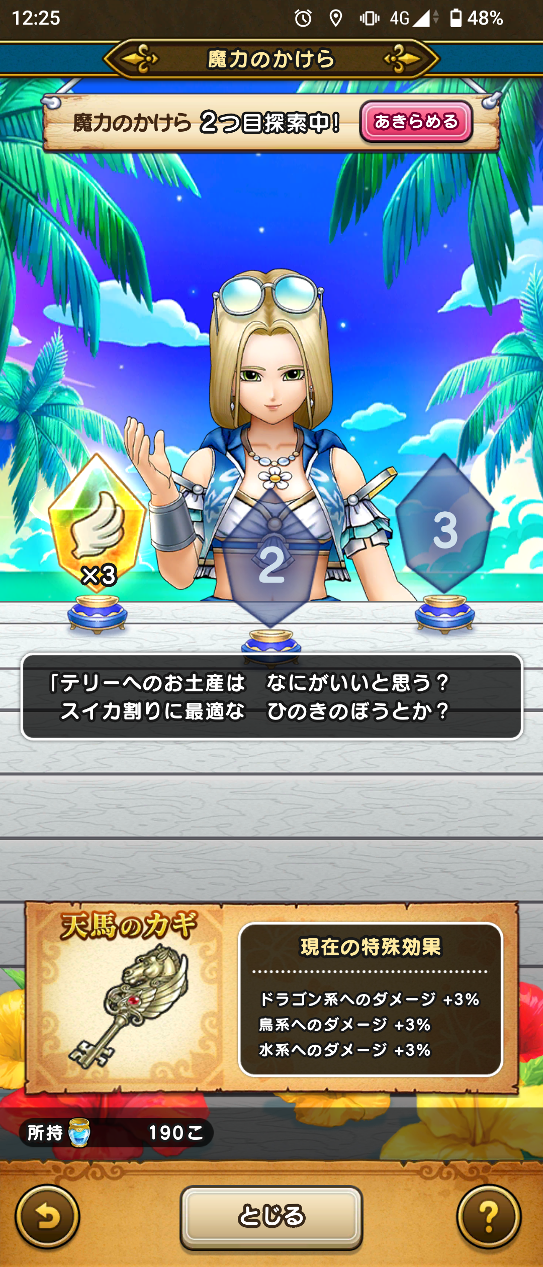 2025-7-31 17:21:16116 字 【DQW】天馬のカギ スイカ岩、配布分もあって、とりあえず一個はS完成🍉 ひのきのぼうはそういう用途にも使えるのか🍉 鳥7%…もうこれでいいのでは🐦 ドラゴンと鳥にしたいんですけど、高確率で水ばかり出る…