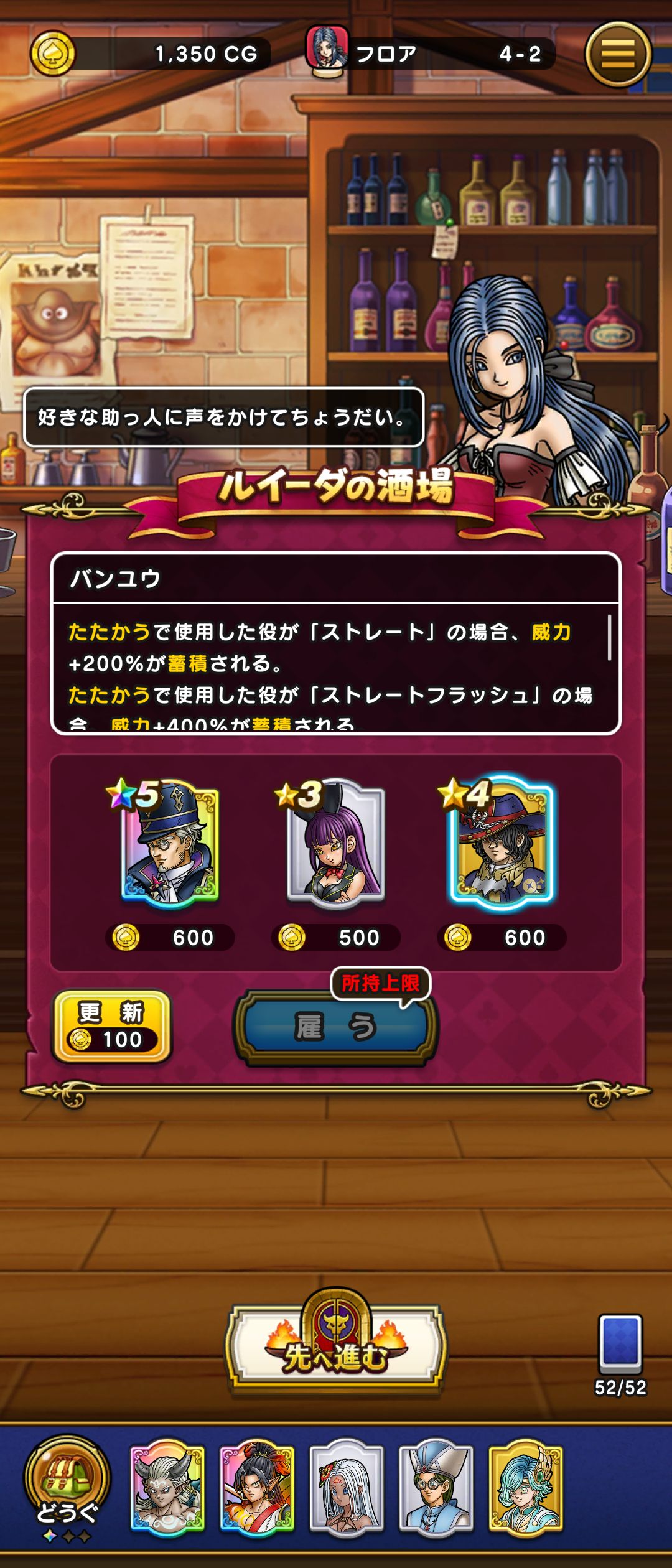 グレーメちゃんと相性がいいんですが(グレーメは数字か一つ抜けててもストレートを作れるという超有能助っ人)現実?でもバンユウさんとグレーメちゃんが仲良く?してたらと想像すると更にはかどりますねぇ…ありがとうありがとう運営様!